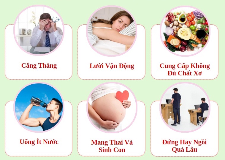 Nguyên nhân gây bệnh trĩ không thể không kể đến bênh táo bón kinh niên. Bệnh nếu không được giải quyết dứt điểm khiến cho vùng hậu môn chịu nhiều áp lực mỗi khi đi ngoài, từ đó gây trĩ.